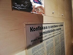 Next to the chronological tour, there are also separate thematic rooms that further detail and deepen aspects addressed in the main exhibition. One, which is clearly addressed to a German audience, explains why the word Sudetendeutsche commonly used in German to describe the former German minority in Czechoslovakia was not used in the exhibition. From a Czech perspective, they were all ‘simply’ Germans by language and thus a geographical categorization would be misleading. This view is supported by the argument that while ‘German’ might be the common denominator for to this population, it still serves as a depiction of various groups who once lived in Bohemia and Moravia, sometimes highly diverse in their dialect and cultural practices, differing according to distant and separate regional environments. One media station makes this point very clear, as visitors can press buttons on a map of the region and listen to voices with widely varying dialects.